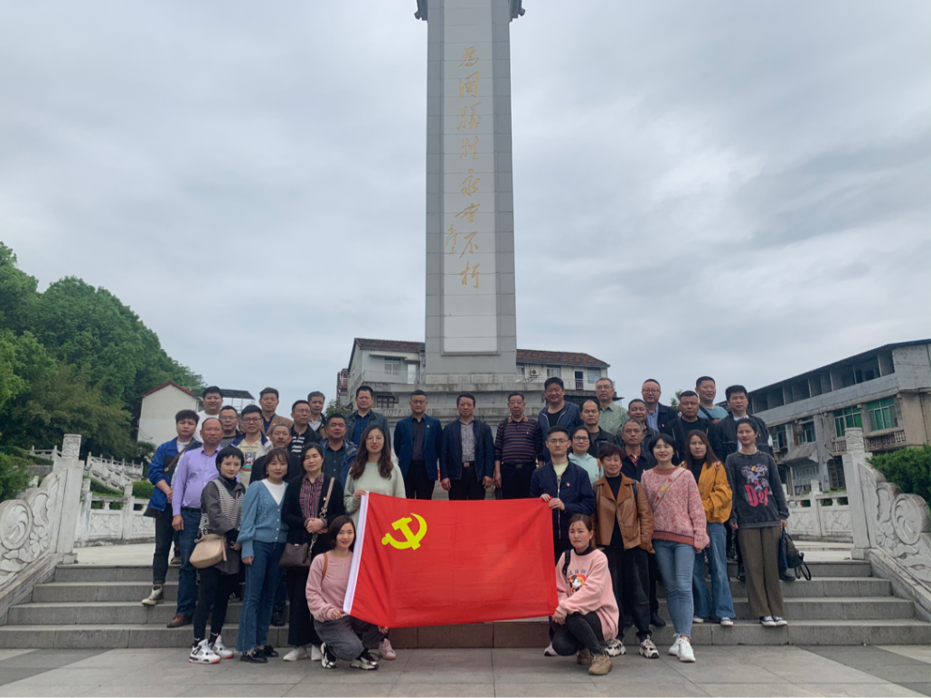 英山县烈士陵园松柏苍翠,丰碑耸立,庄严肃穆。在烈士纪念碑前,全体党员整齐列队,鞠躬献礼,默哀怀念,并敬献花篮,以此表达对烈士的崇高敬意和深切悼念之情。随后,全体党员面向党旗,重温入党誓词,表达向革命先烈学习的决心、坚守忠诚于党的初心和不懈为党的事业奋斗终身的恒心。宣誓后,大家瞻仰了英山县革命烈士纪念碑、革命烈士纪念馆,深切缅怀为中华民族解放事业而壮烈牺牲的2万多名英雄儿女的历史功勋,共同追忆英山这片红色革命土地上的红色记忆,深刻感悟大别山精神的丰富内涵,切身感受到红色政权来之不易、新中国来之不易、中国特色社会主义来之不易。