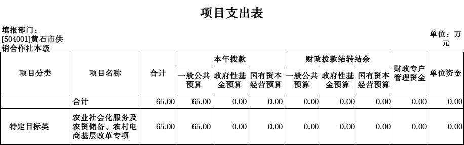 项目包括:1、农业社会化服务及农资储备、农村电商基层改革项目。预算经费65万元,比与上年对比无增减变化,与上年预算持平。主要用于供销社综合改革相关工作经费对农民专业合作社等涉农主体的奖补资金。