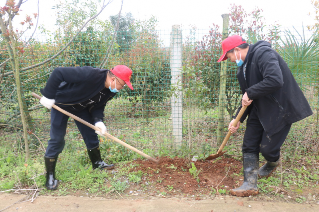市社党组书记方朝阳一边挖坑培土,一边与莲花村程良强书记交流:“前年我们载下的杂柑树今年挂果了吧?”“这次栽种的桂花树一共有多少棵?”“脱贫后,今年村里对产业发展有没有什么新的打算?”,和煦的春风中,程良强书记一一作答。方朝阳表示,近几年,供销社每年都在莲花村开展了义务植树活动,村里要大力树立绿水青山就是金山银山的发展理念,做好树木栽种后的管护工作,共同将莲花村建设成为绿水青山环绕的美丽新乡村。