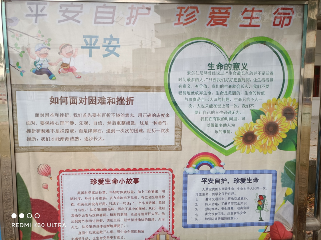 晚自习,我校按班级对学生进行校园安全教育宣传,从课间活动安全、校园活动安全、交通安全、食品安全、防溺水、用火安全、防止意外伤害等主题对学生进行深入宣讲,将安全预防措施体现在校园文化建设之中,以此增强全校师生的安全防范意识。