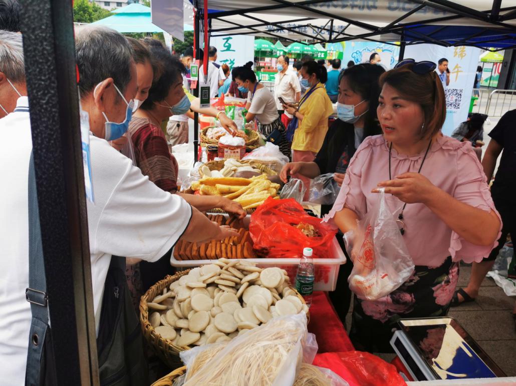 太子的豆腐、枫林的油面、灵乡的豆豉、黄金湖的风干鱼……一样样农特产品整齐地摆放在展位的台面上,吸引了众多市民前来咨询购买。