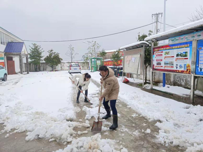 近日,市供销社驻大王镇莲花村工作队为应对暴雪极寒天气,按照《关于组织驻村工作队做好极端天气应对工作的通知》,积极开展清理路面、走访入户活动。