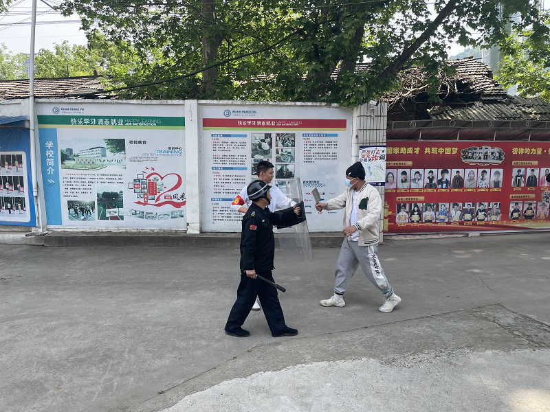 为进一步加强校园安全工作,提高同学们的安全防范意识, 提高对恐怖事件的合理处置、自护自救及有效逃生避险的能力,4月20日上午9点,黄石市电子技术技工学校及牧羊湖派出所组织本校师生进行了防暴演习。