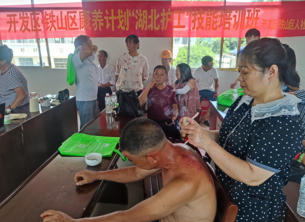 此次走访过程中,很多村民反映想学一些技能帮助自己在周边务工,对此,市供销社驻村工作队与村两委从开发区铁山区人社局请来了教护工培训的老师,开展了为期6天的教学,教学期间村干部还积极为参加培训的村民提供餐食保障,授课的老师手把手的教,还现场进行坐诊,不光提高了村民实用技能,还帮助村民治疗颈椎,腰椎之类的疾病。