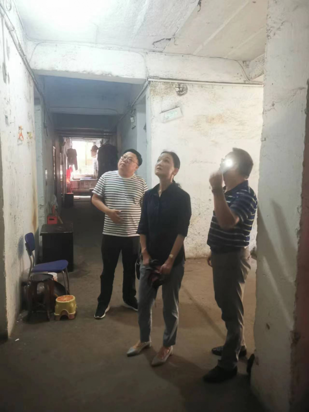 7月24日,市供销社刘晓红(党组书记、主任)、王能胜(党组成员、副主任)到供销社企业职工宿舍楼检查房屋安全情况。针对老旧楼房出入不便、线路老化、房屋结构隐患等问题,刘晓红主任现场办公,要求直属资产公司聘请专业团队对老旧房屋进行全面评估,按照评估情况进行维修,同时积极向西塞山区政府申请老旧小区改造等政策。