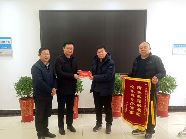 2月3日上午,下陆区副区长陈超带领团结社区“两委”班子成员一行人来到市供销社,为市供销合作社联合社下沉团结社区工作队送上了感谢信和绣着“情系基层解难题,心系群众办实事”的锦旗,对上一年度市供销社在文明创建、单位党建、平安建设、“美好环境与幸福生活共同缔造”“下基层察民情解民忧暖民心”等工作的支持和帮助表示感谢,并就本年度共驻共建、“共同缔造”等工作进行座谈交流。市供销社党组成员、副主任刘海兵,四级调研员、团结社区“第一书记”柴英、工作队队员代表等参加座谈会。