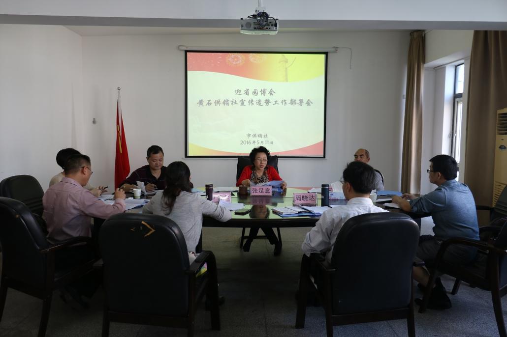 5月11日,黄石市供销社召开迎省园博会宣传造势工作部署会。市供销社党委书记、主任张足意主持会议,市社领导班子参加会议。