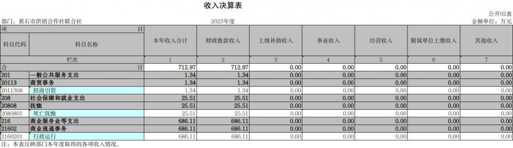 第三部分 黄石市供销社2023年度部门决算情况说明
