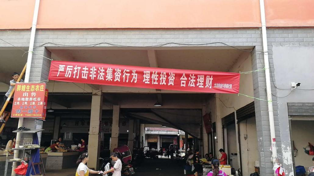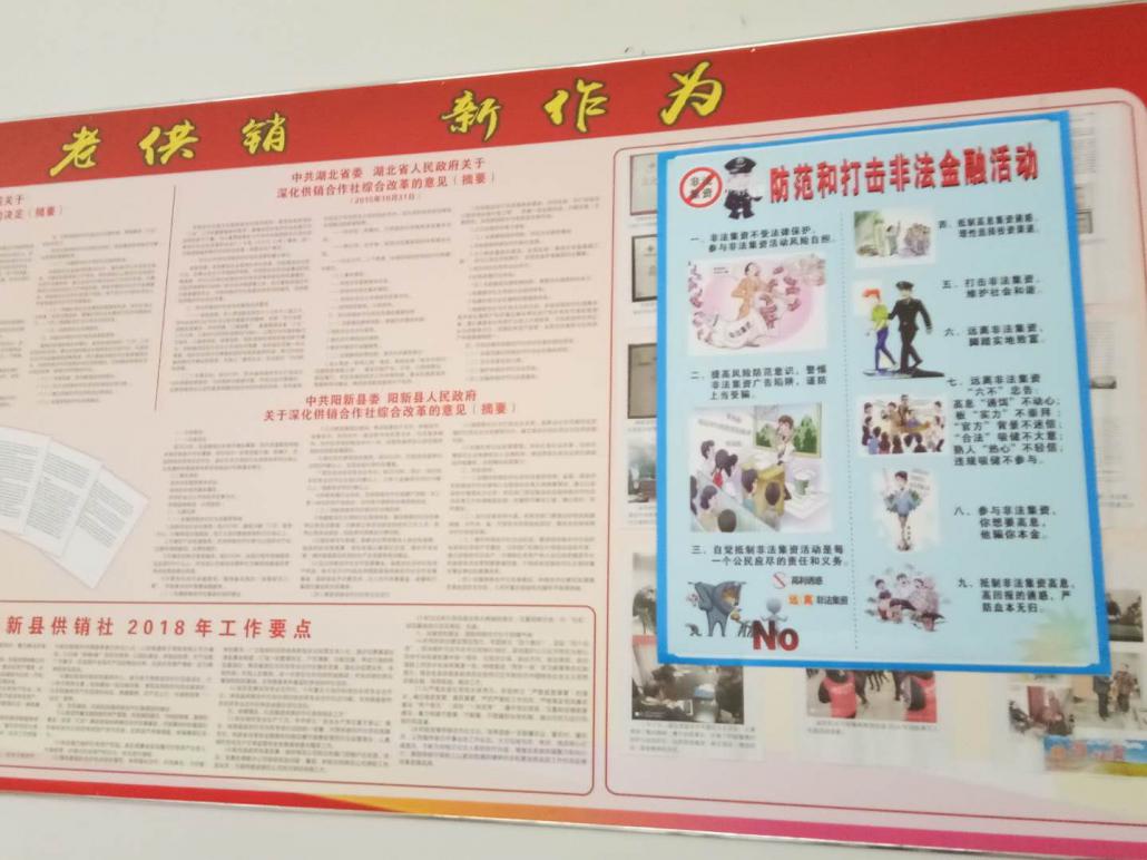 大冶市金牛供销社在农贸市场悬挂横幅开展防范非法集资宣传