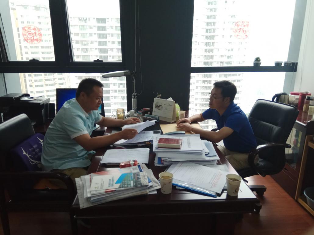 图为省社合作指导处处长钱春林(左一)与市社副主任周晓达沟通交流工作