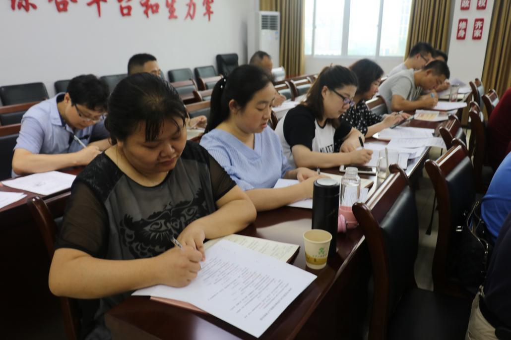 此次测试主要围绕提高干部职工对创文活动的知晓率、参与率和满意率展开。会议首先组织大家填写了《2018年度黄石市文明城市创建入户调查问卷》,边填写问卷,会议主持人边向干部职工列举近两年来全市各行各业广泛参与创建全国文明城市所作的工作和具体成效,使大家对创文工作有了更加直观全面的了解。接着,会议主持人在不招呼的前提下,随机向5名参会干部大会进行了现场提问:请问黄石精神是什么?请问中国梦的内涵是什么?请背诵24字核心价值观……,随着主持人的提问,被点名干部快速答出了各个问题,主持人频频点头表示满意。最后,会议向全体干部职工发放了创建文明城市应知应会测试卷,全体干部当场闭卷作答。
