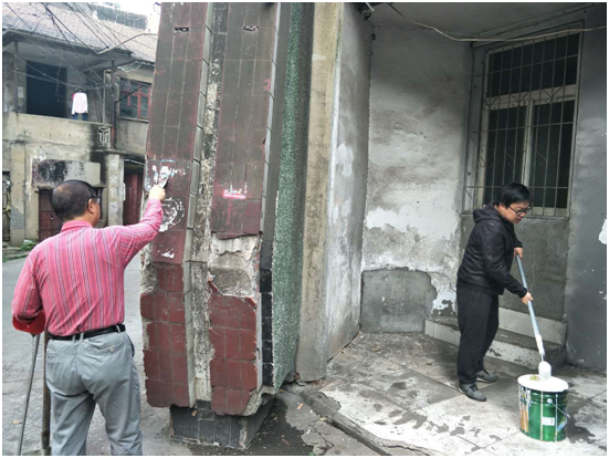 一是针对居民楼墙面,实施“祛斑抹粉”行动。联合社区干部对居民楼栋进行全面摸排,与社区志愿者共同分片包保,对墙面“牛皮癣”进行无死角式清理,对顽固印刷广告及污损墙面,用石灰水进行重新刷制。通过开展“祛斑抹粉”行动,共清理3栋社区居民楼。