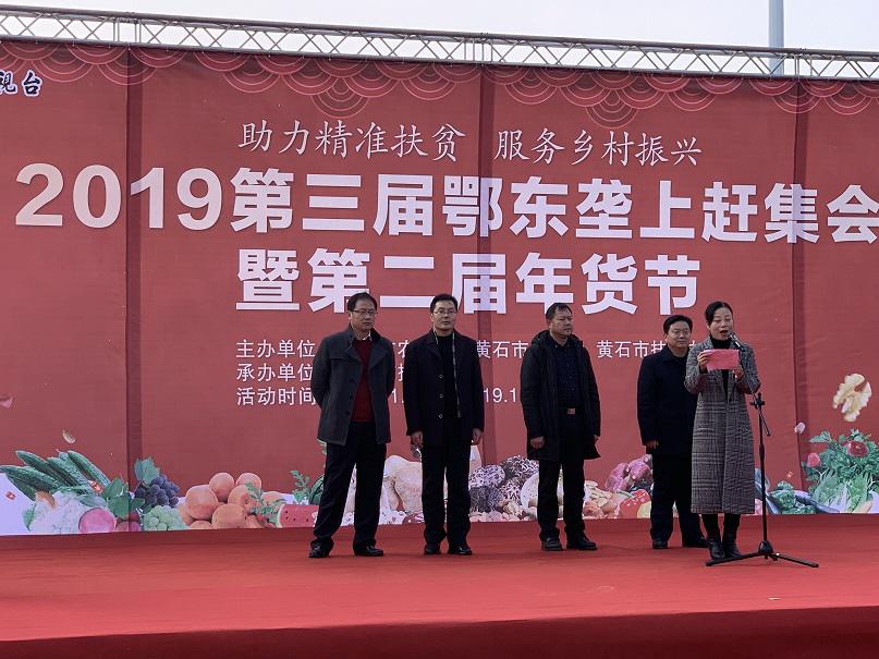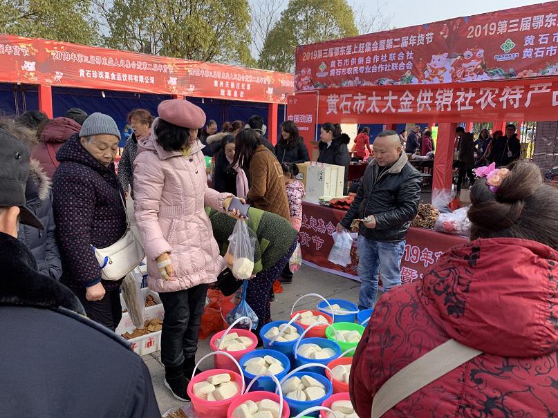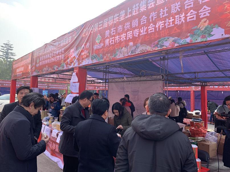 为全面展示我市精准扶贫、精准脱贫成果,搭建农产品销售平台,丰富黄石市民菜篮子、米袋子、油罐子,1月18日上午,2019年鄂东垄上赶集会暨第三届年货节在黄石广电中心院内盛大开幕。黄石供销社农副产品购销服务中心、黄石农业专业合作社联合会共联合10家农民专业合作社近百余种农副产品参展。