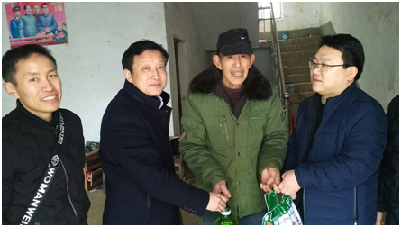 元月29日上午,正值农历小年,市供销社党组书记方朝阳、市一中校长方和平率领两单位部分班子成员及扶贫负责干部,再次赴莲花村走访慰问,开展“六个一”活动,关心和了解贫困户疾苦,关注贫困户“两不愁三保障”是否落实。