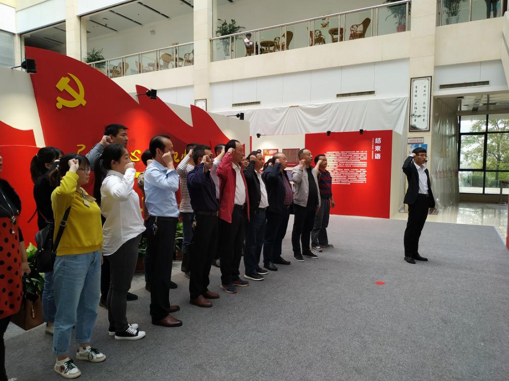 参观开始前,党员同志们面对党旗庄严重温了入党誓词,随后,大家怀着崇敬的心情步入展区。