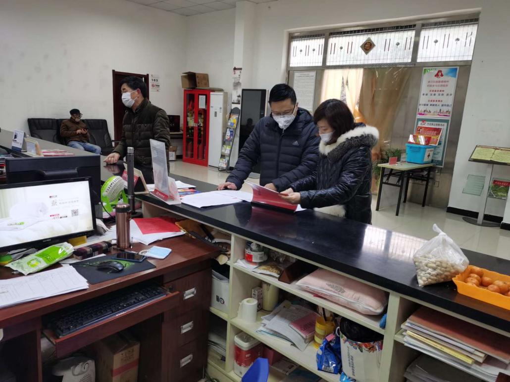 农历初三,黄石市供销社党组书记,理事会主任方朝阳率相关人员赴下陆区团结社区督导冠状病毒肺炎防控工作。在社区,方朝阳同志详细了解了防控工作情况,查看了外地回黄人员登记情况,特别是武汉回黄人员登记及居家隔离等情况,方朝阳同志叮嘱社区工作人员一定要做好宣传和值守及时撑握情况,劝导居民不聚会丶不拜年丶不窜门,做好防控工作。