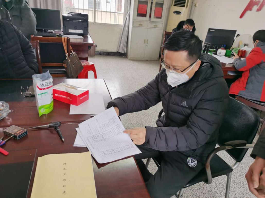 嗣后,方朝阳同志马不停蹄赶赴精准扶贫驻点的莲花村开展疫情防控检查督导,在查看村里疫情防控登记本后,他要求驻村工作队要积极配合村两委做好防控工作,要劝导村民取消一切聚会活动,不登门拜年,不窜门,不得集中打牌娱乐,不搞宴请等,尽量做好个人防护,特别要做好外地回村村民的监控工作。