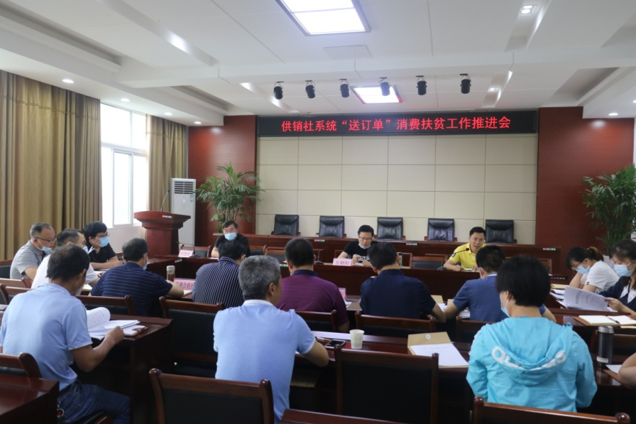 为扎实推进全市供销系统“三送一稳”工作,切实将疫情影响降到最低,打赢打好脱贫攻坚战,5月25日上午,市供销社党组成员、副主任周晓达主持召开系统“送订单”消费扶贫工作推进会,市供销社党组书记、主任方朝阳出席会议并讲话。大冶市、阳新县供销社主要负责人、市供销社直属各单位、机关各科室负责人共20余人参加会议。