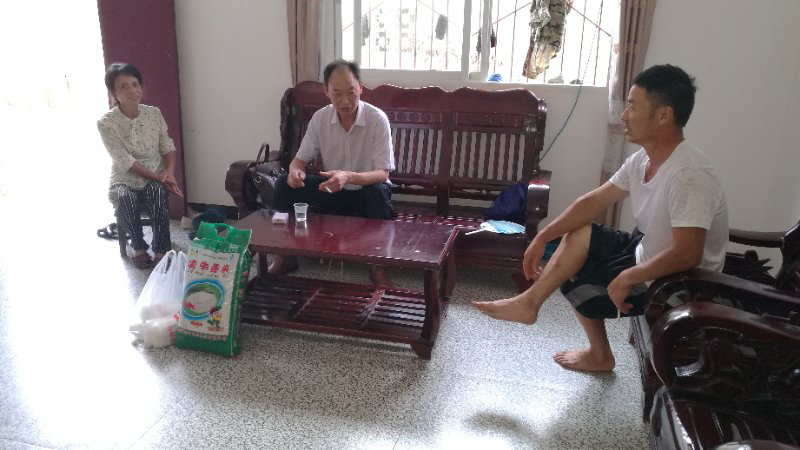 (市供销社包保干部带上米、油等物资到贫困村上门看望受灾贫困户)