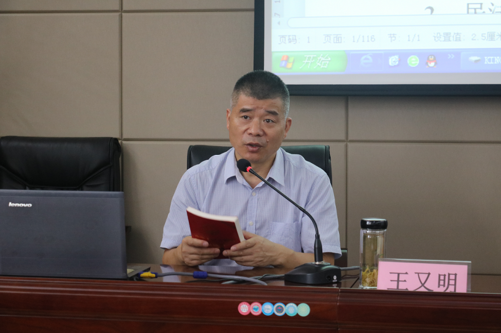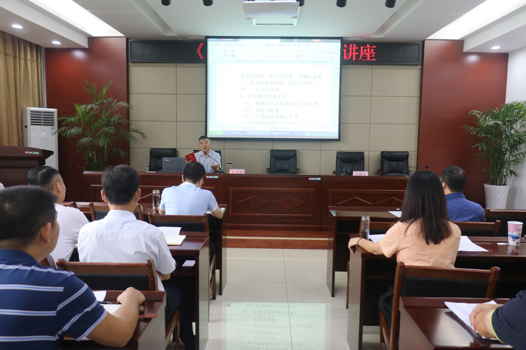 为深入学习贯彻《中华人民共和国民法典》,提升市社系统党员干部的法治意识,进一步推进依法治社向纵深发展,9月10日上午,市供销社邀请市宣讲团成员,现任黄石市中级人民法院党组副书记、副院长王又明同志为系统党员干部宣讲《民法典》。