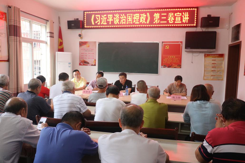 9月14日下午,下陆团结社区在社区会议室开展《习近平谈治国理政》(第三卷)宣讲活动,该社区20余名“下沉”党员干部及20余名社区干部、老党员参加活动。