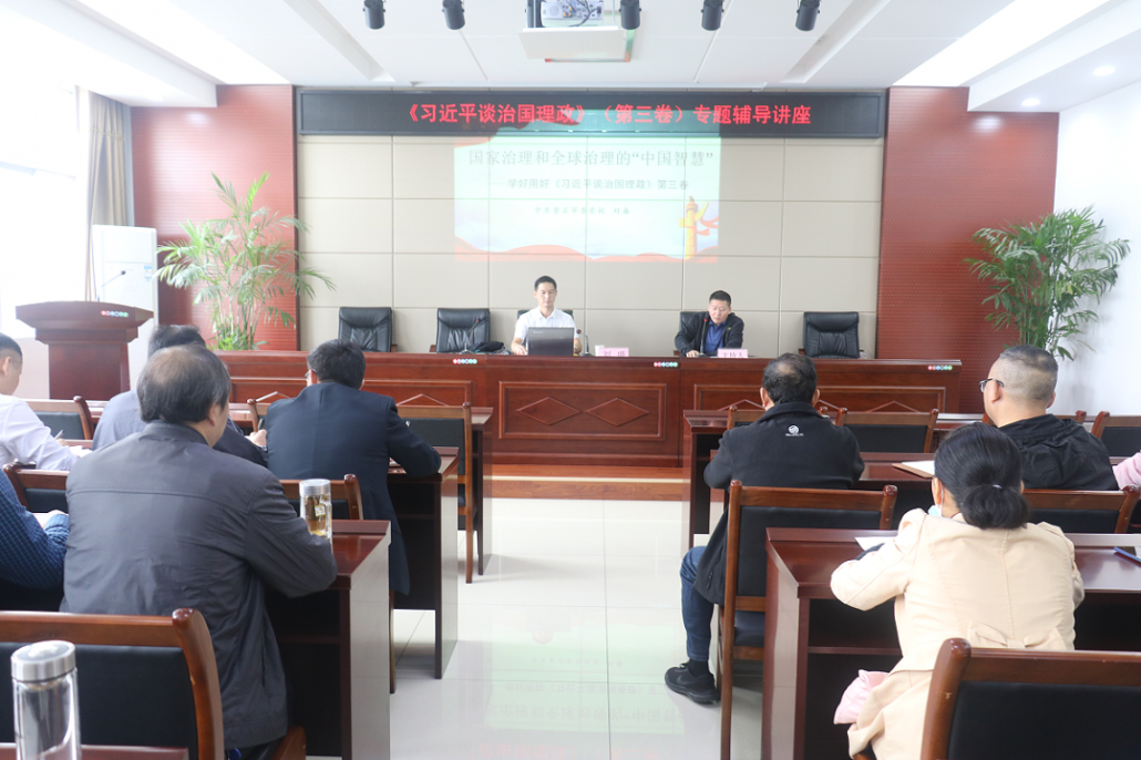 刘盛同志以《国家治理和全球治理的“中国智慧”》为题,深刻阐述了第三卷的出版背景和重大意义,对第三卷的逻辑结构及演进过程进行了深入剖析,对主题、核心、灵魂、原则、关键等方面进行了细致解读。最后,就如何学好第三卷,提出了要原原本本学、联系一二卷学和与“四史”结合学的要求。整场宣讲内容丰富、数据详实、脉络清晰,对于系统党员干部学好用好第三卷具有很强的指导意义。