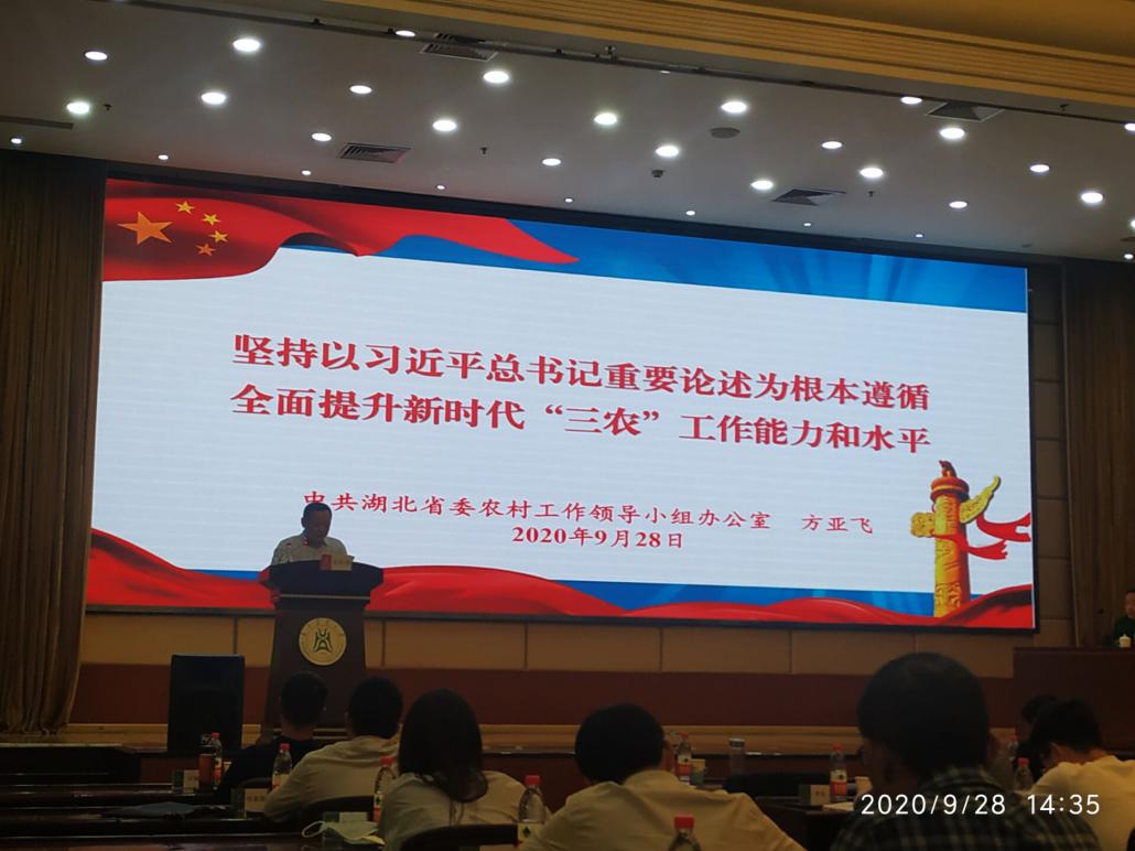 9月28—29日,黄石市乡村振兴工作培训班在武汉华中农业大学顺利举办。该培训班由市农委牵头组织,黄石市市直单位,大冶市、阳新县、西塞山区开发区等相关负责人,共90名学员参加培训,市供销社派出一人参加。华中农业大学党委副书记、副校长姚江林,黄石市市委农办主任、市农业农村局局长黄学杰分别在开班仪式上做了致辞。培训班邀请了省委农办、湖北省农业农村厅相关部门负责人以及华中农业大学相关专家教授等授课,学员们围绕深入贯彻落实习近平总书记关于“三农”工作的重要论述,听取了农村人居环境整治、农村社会治理、富民产业发展、“听党话、感党恩、跟党走”宣讲等专题报告。