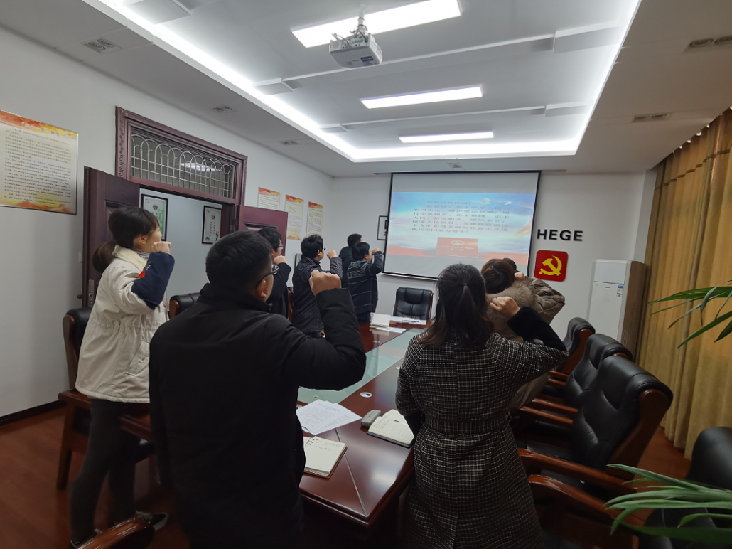 按照宪法宣誓流程,现场党员干部在领誓人的领诵下,庄重肃立、右手举拳,字字铿锵地跟诵了誓词。宣誓仪式后,党员干部集中学习了习近平法治思想、党的十九届五中全会精神、以及宪法相关解读等内容,并开展了热烈讨论,进一步加强了对宪法的理解和认识。